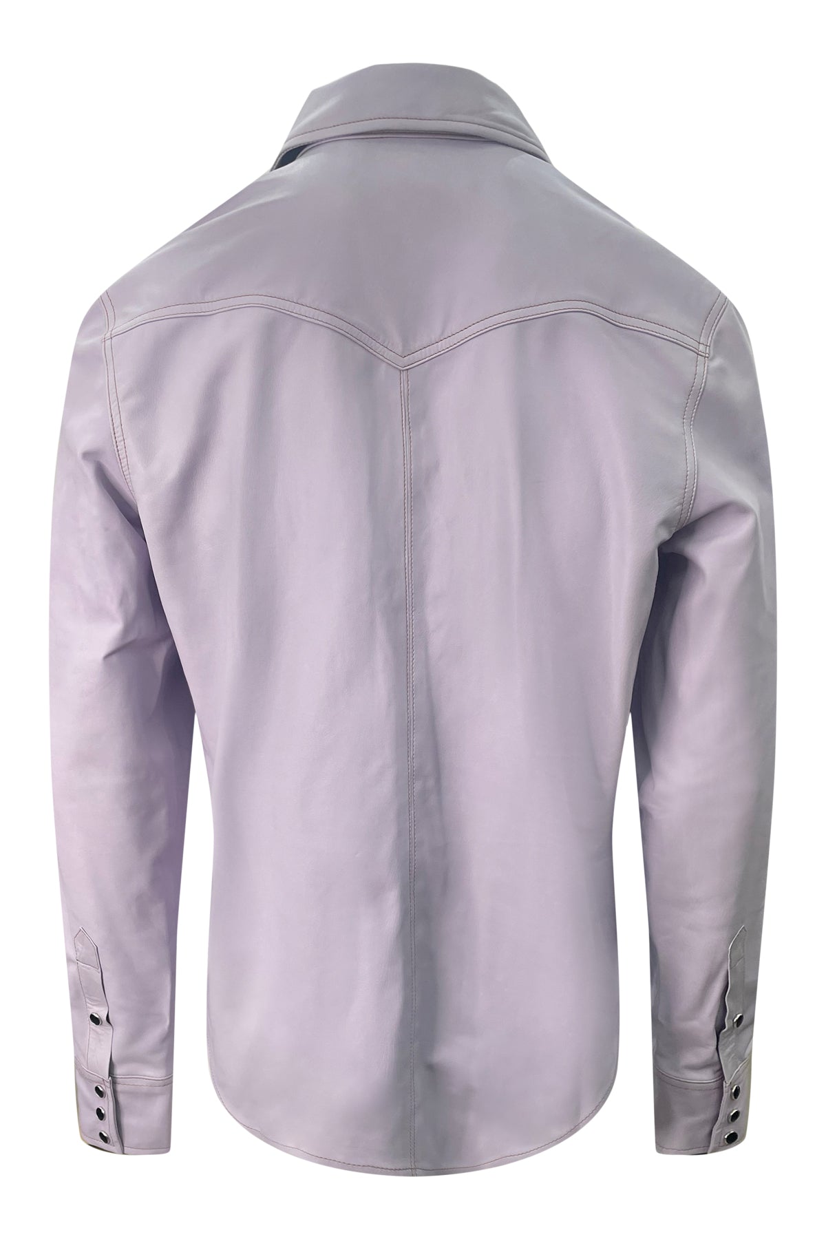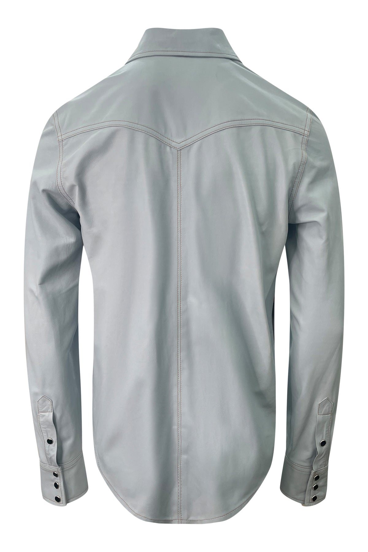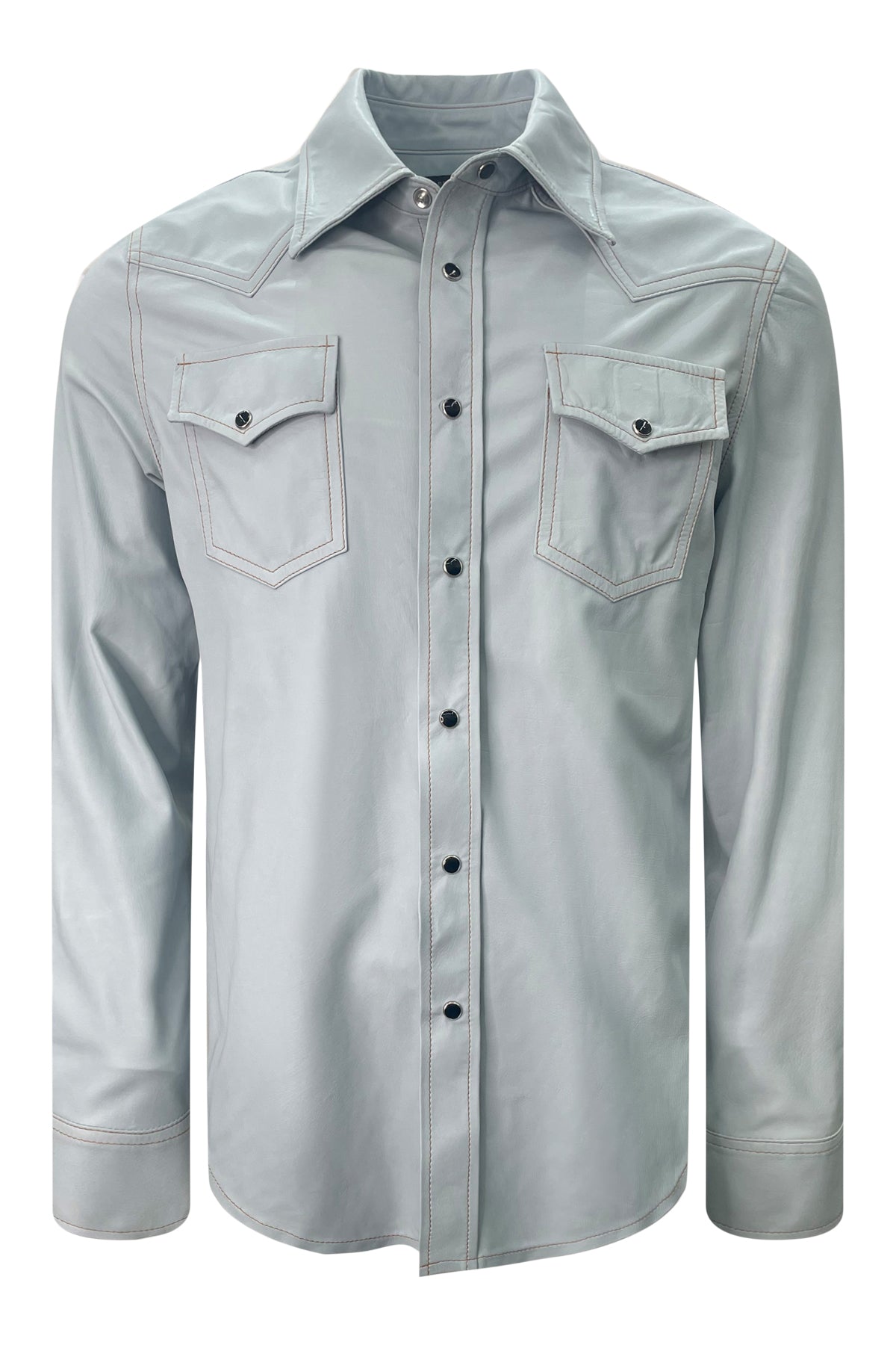 Western Shirt with snap button front closure and snap button flap pockets. Crafted from 100% calfskin for a sleek and luxurious finish. Premium European fabric. Made in the USA.