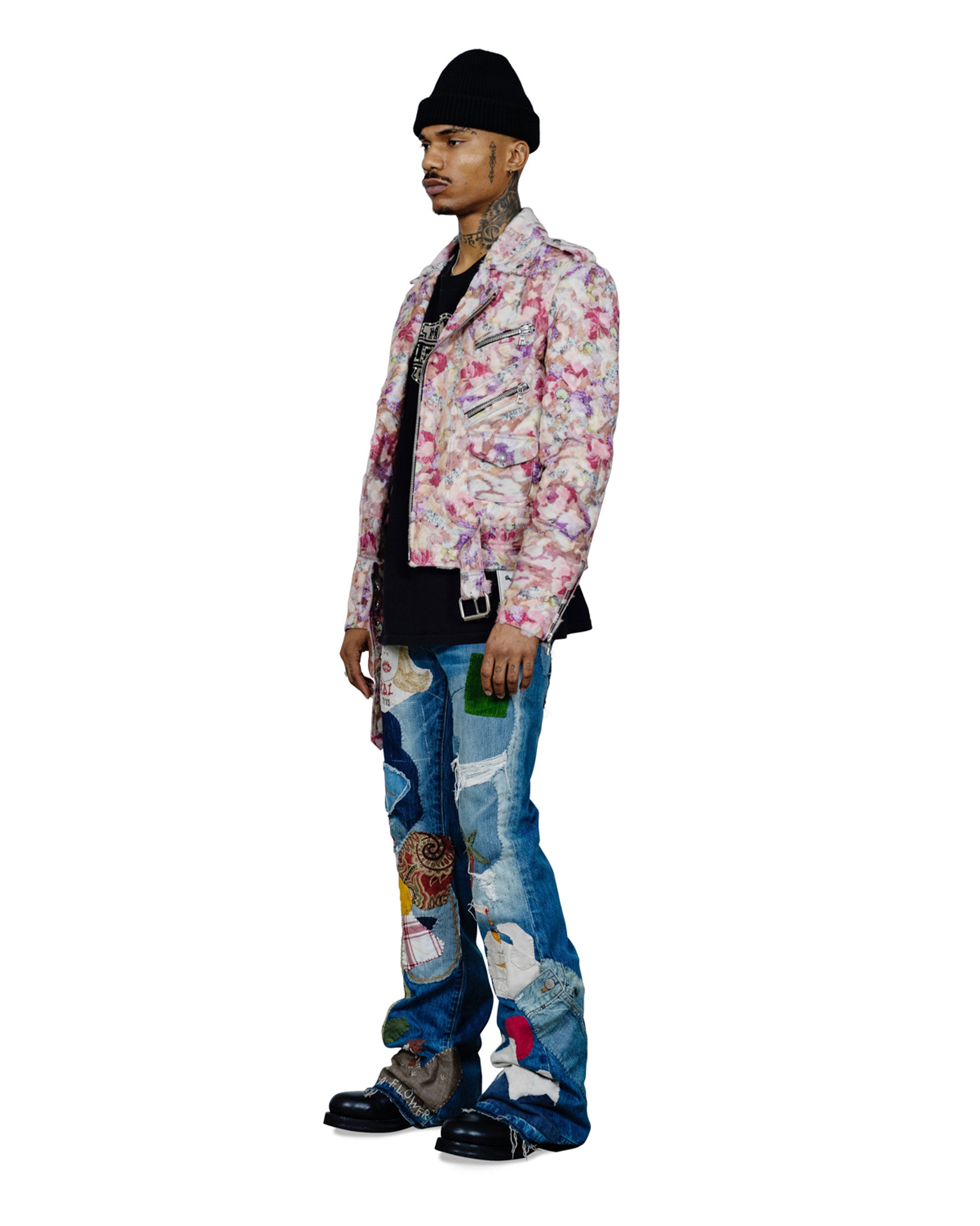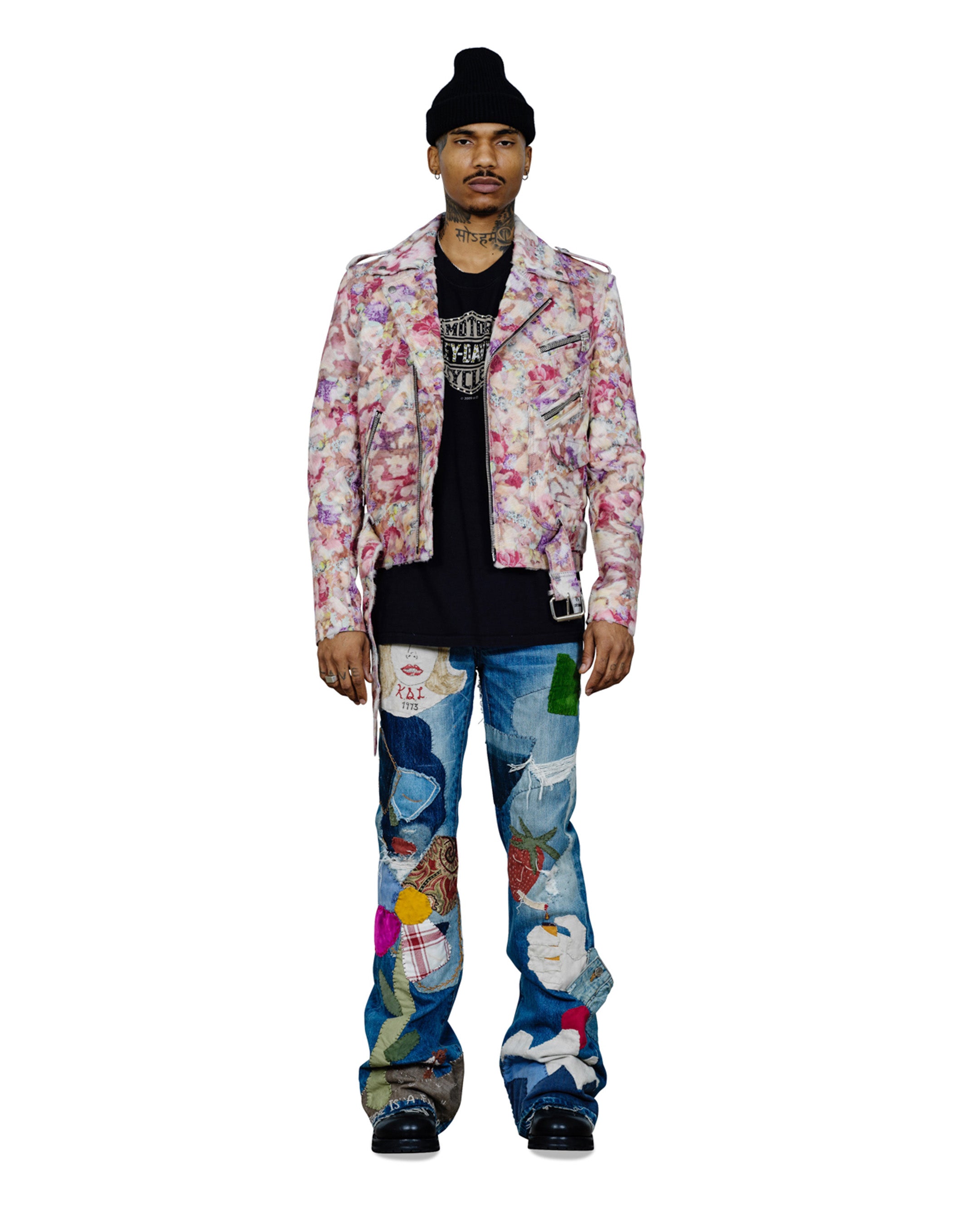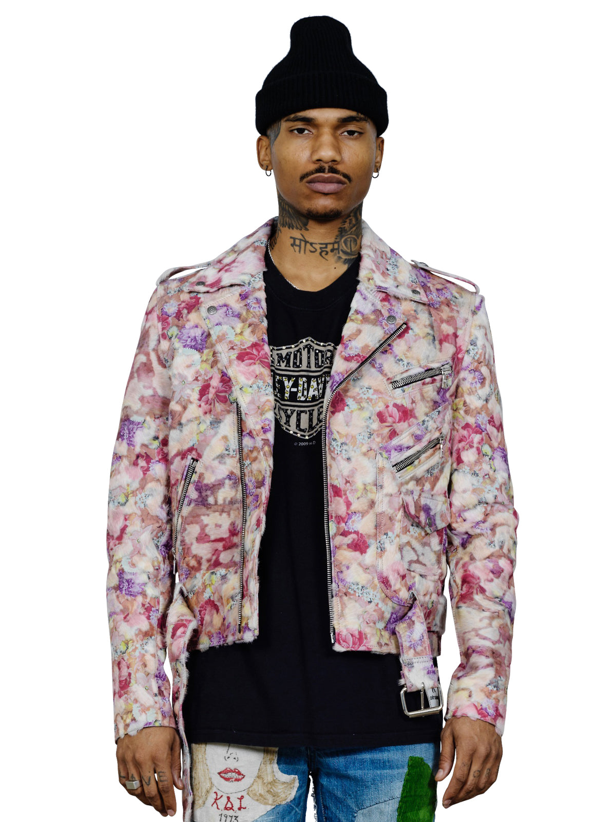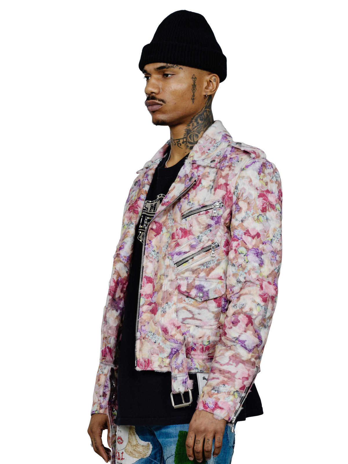 Hudson Hair-On Floral Leather Moto Jacket crafted from 100% calfskin for a luxurious and textured design. Premium European fabric. Made in the USA.