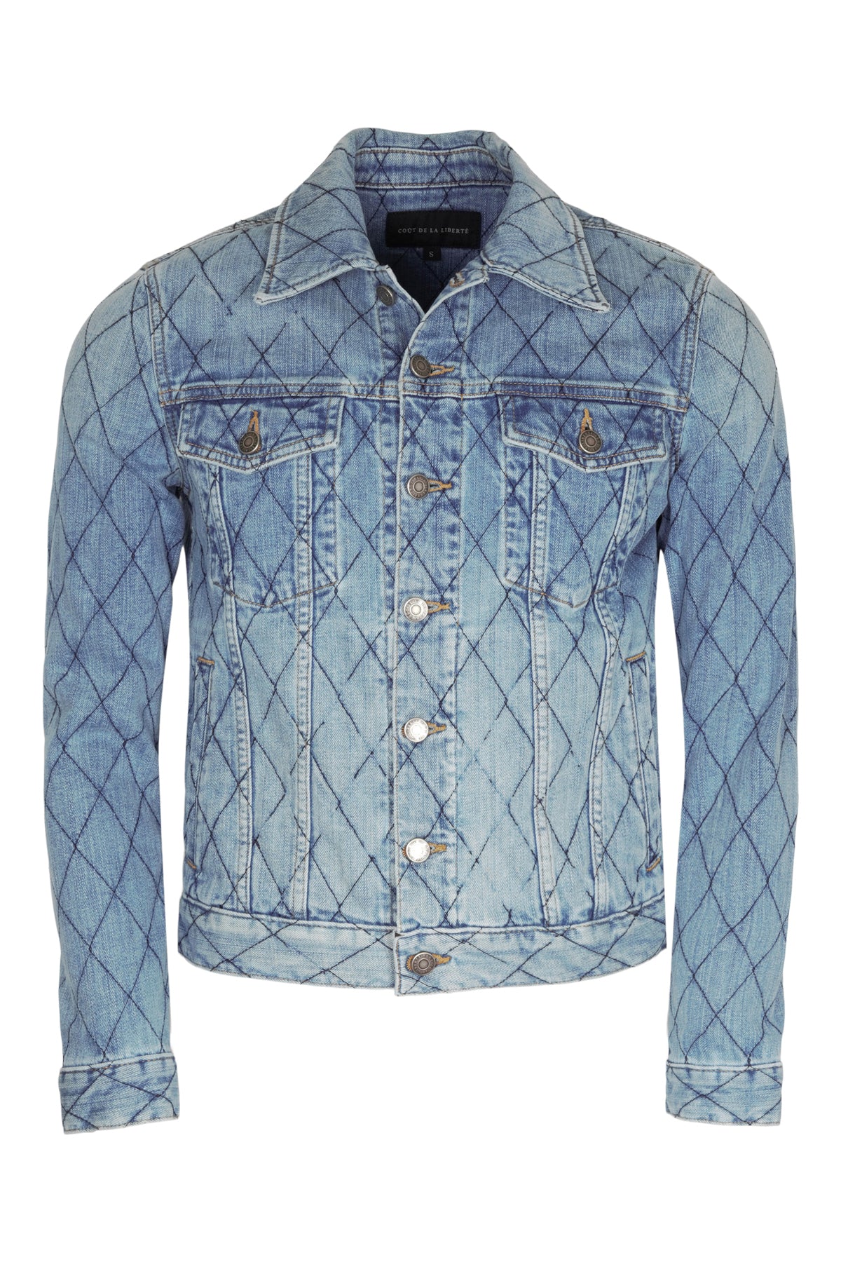 Trucker jacket with button front closure and button flap pockets. Crafted from a blend of 92% cotton, 6% elastomultiester, and 2% elastane for a comfortable and flexible fit. Premium European fabric. Made in the USA.