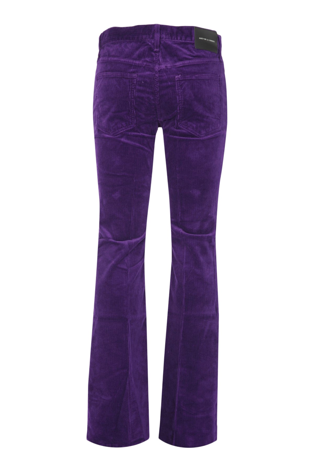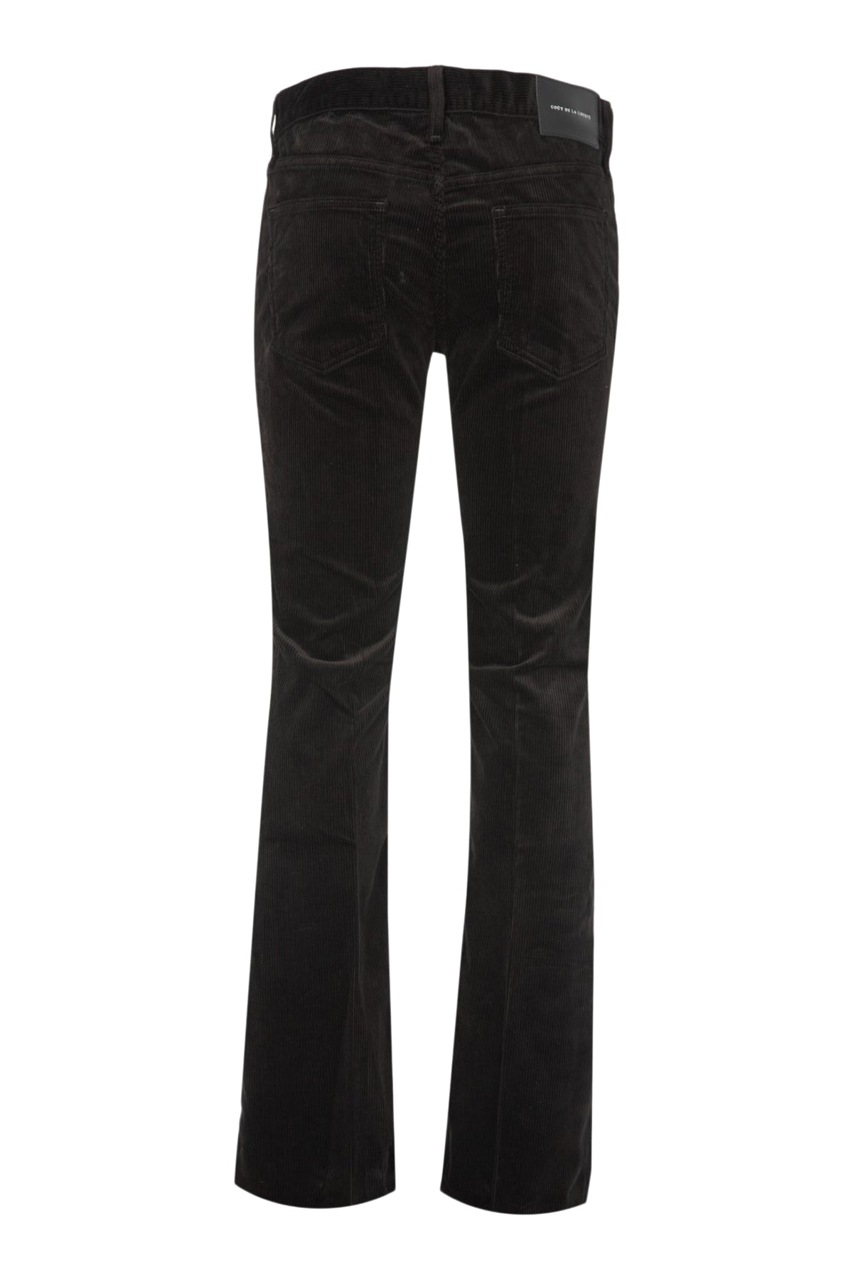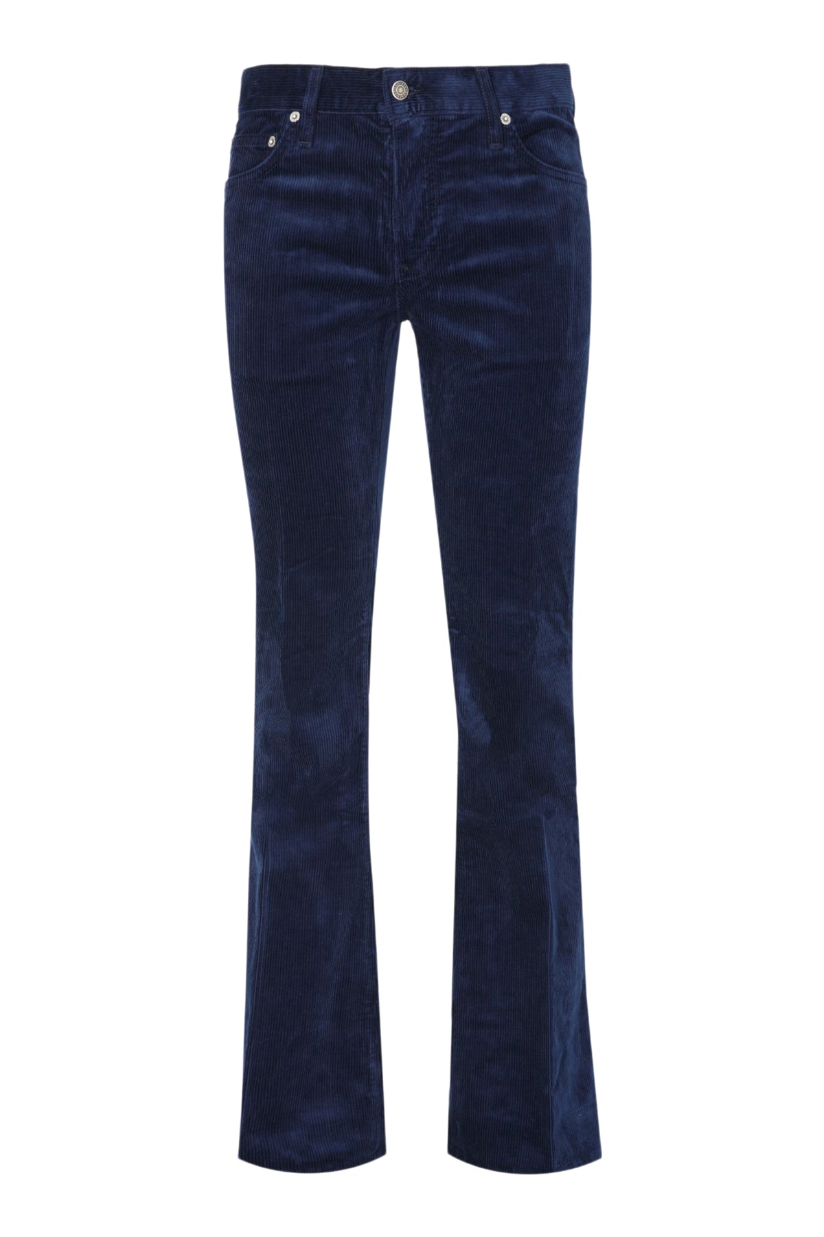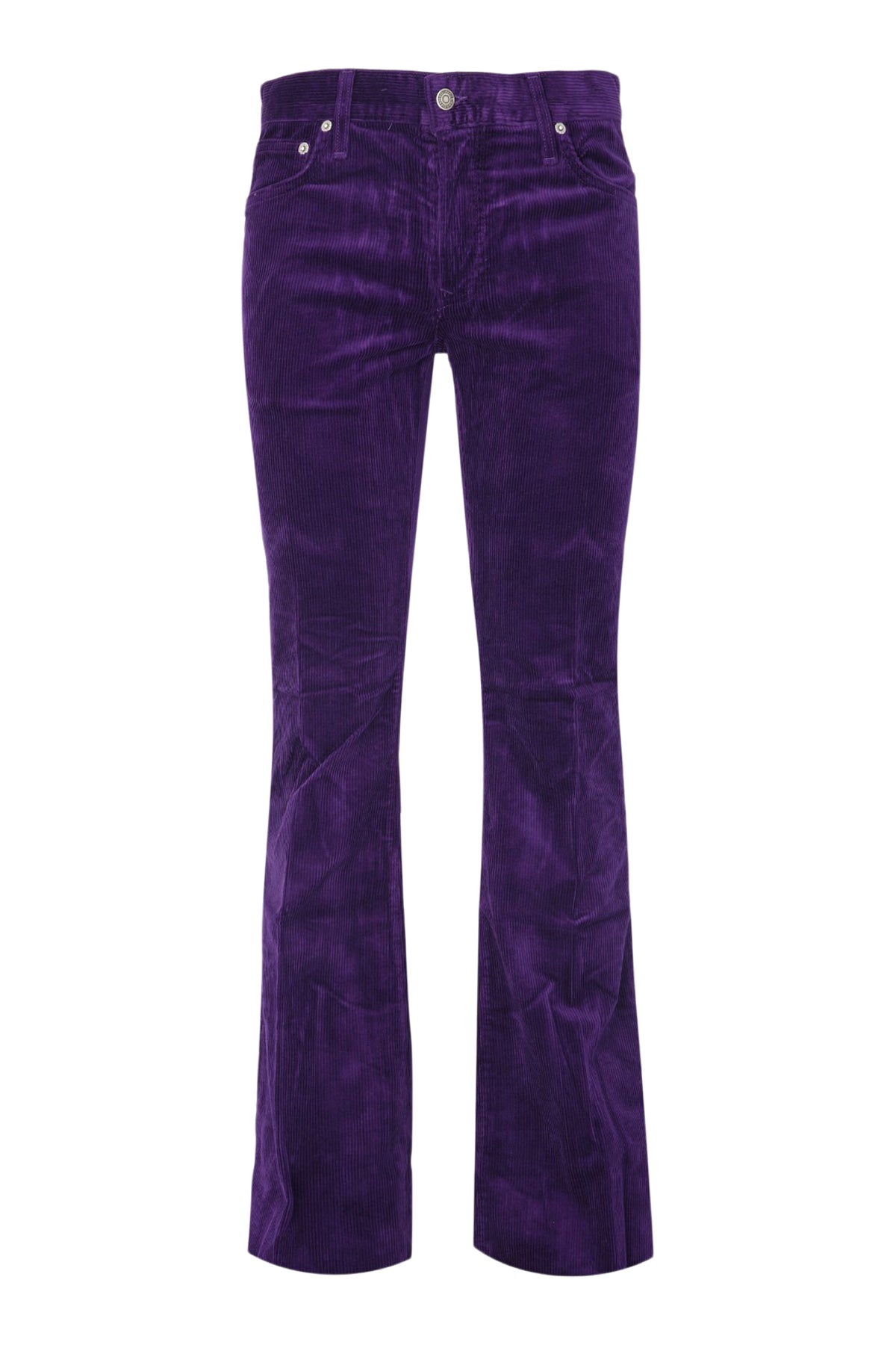 Low-rise flare pants with button front closure and classic five-pocket styling. Crafted from 99% cotton and 1% elastane for a comfortable and flexible fit. Premium European fabric. Made in the USA.