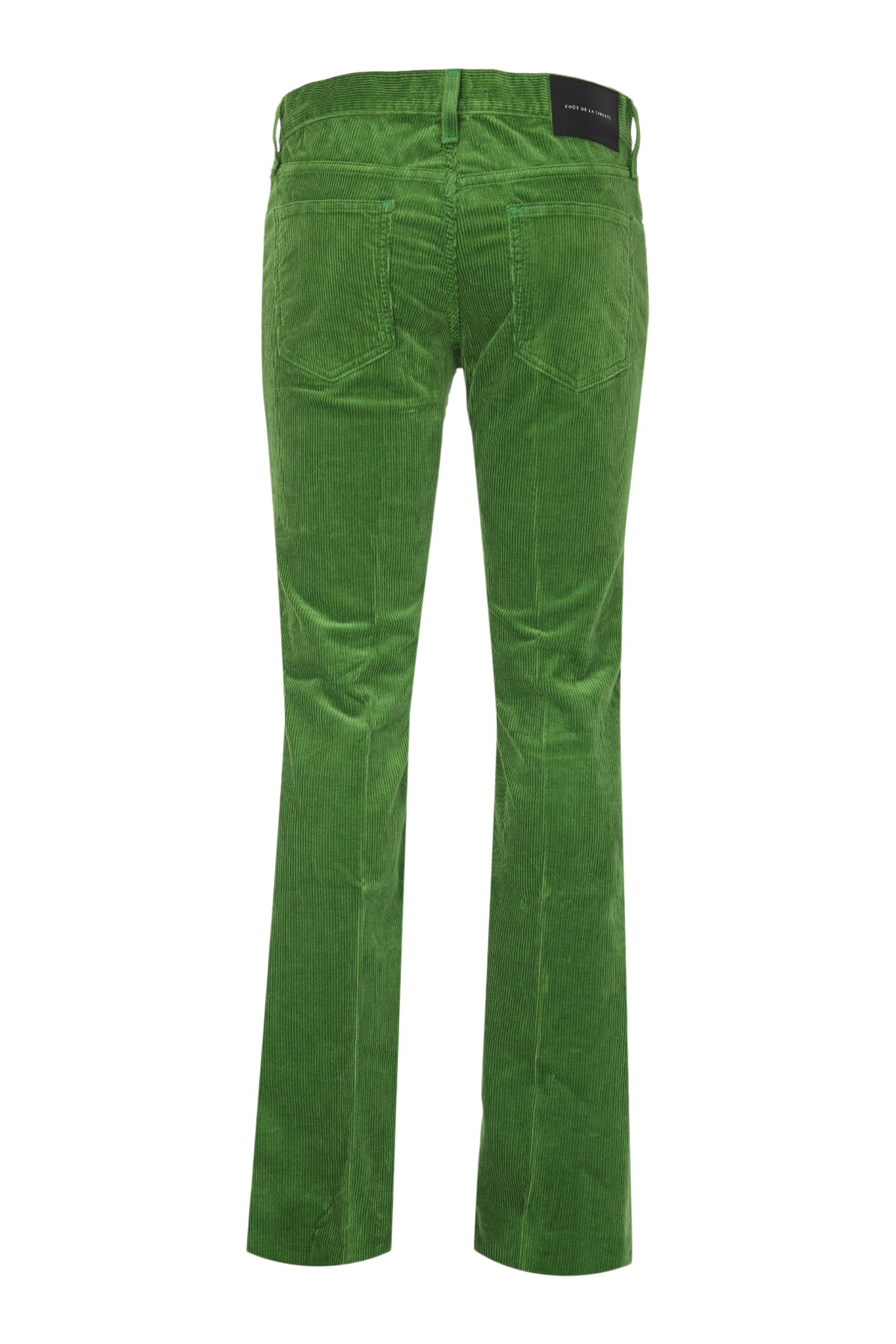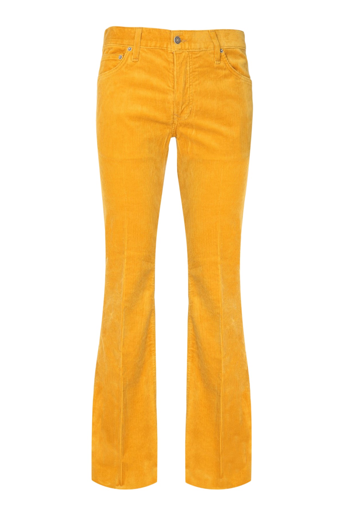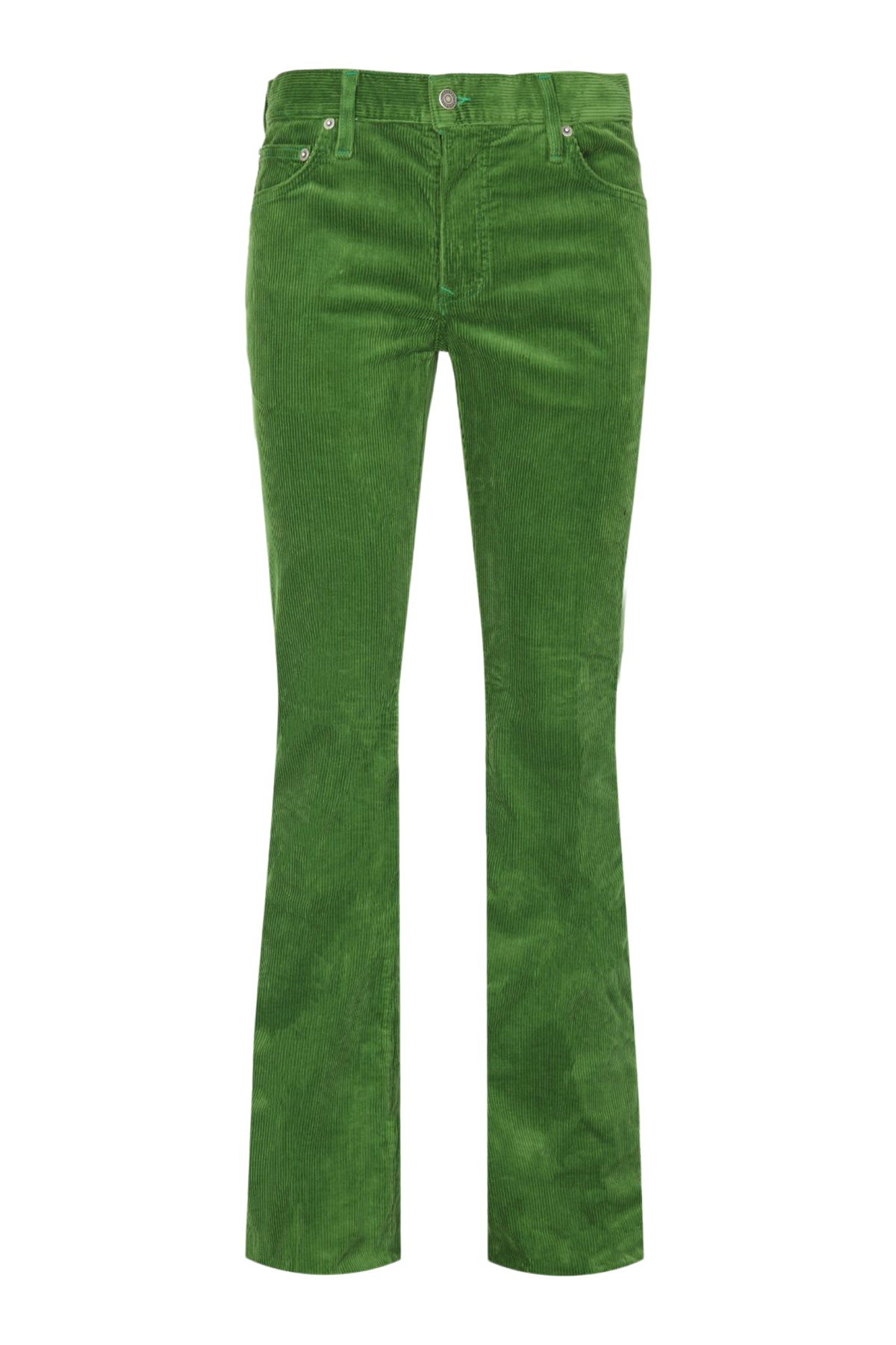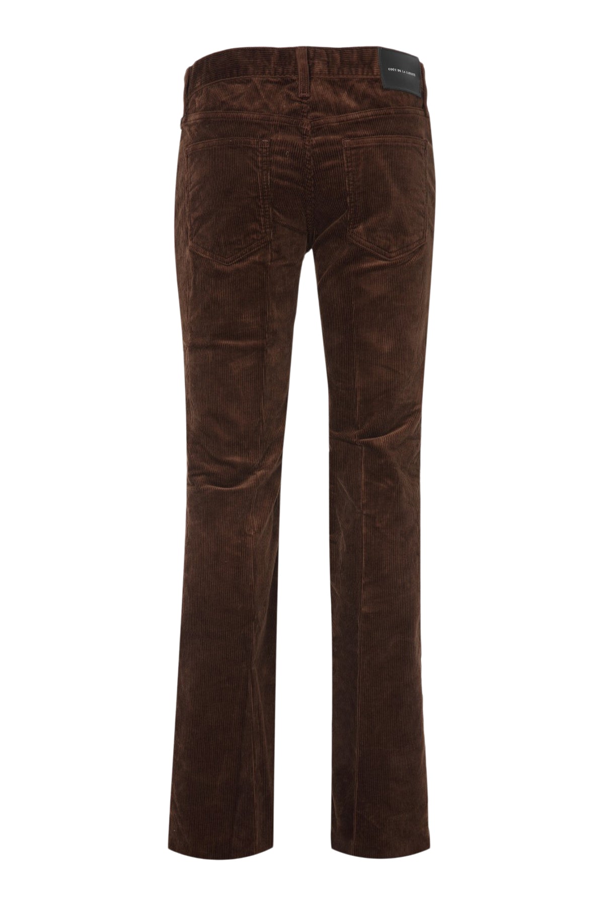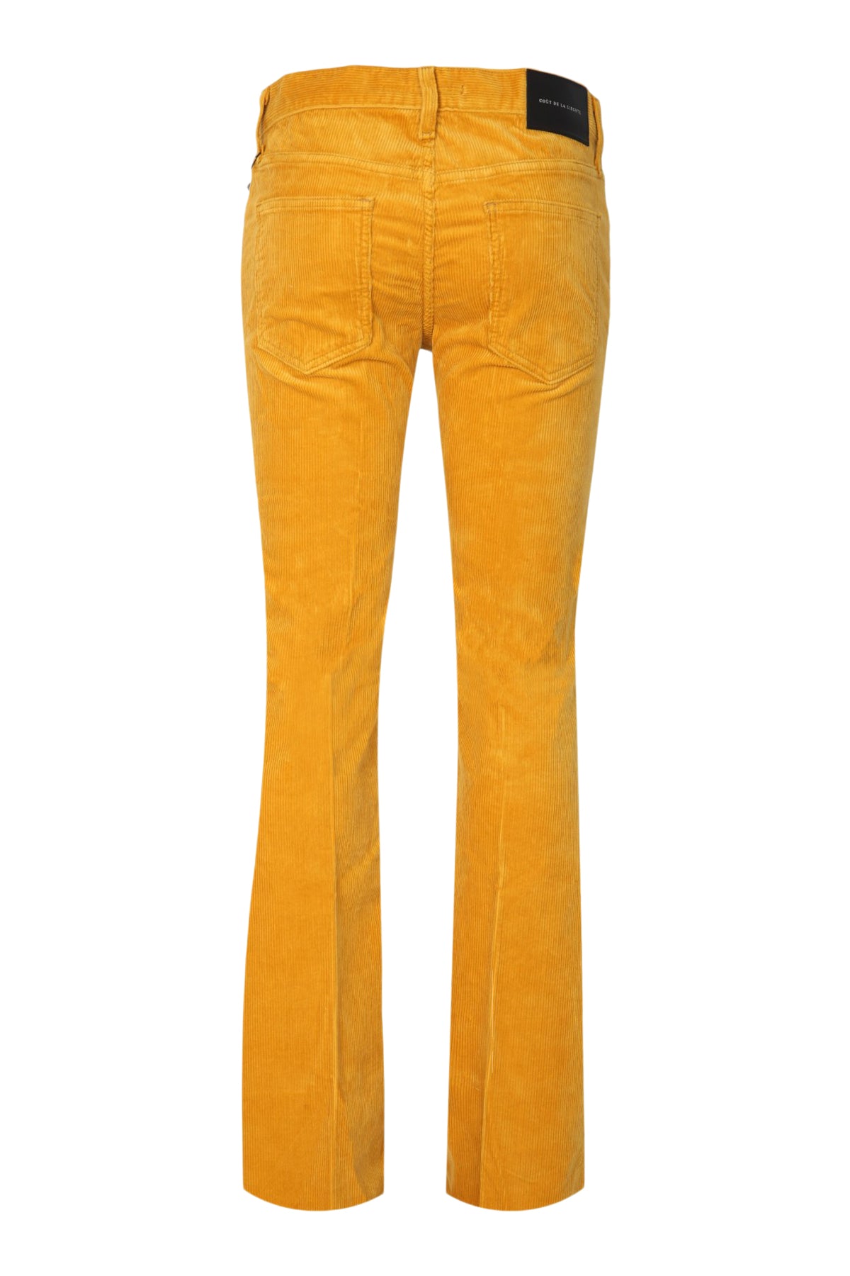 Low-rise flare pants with button front closure and classic five-pocket styling. Crafted from 99% cotton and 1% elastane for a comfortable and flexible fit. Premium European fabric. Made in the USA.