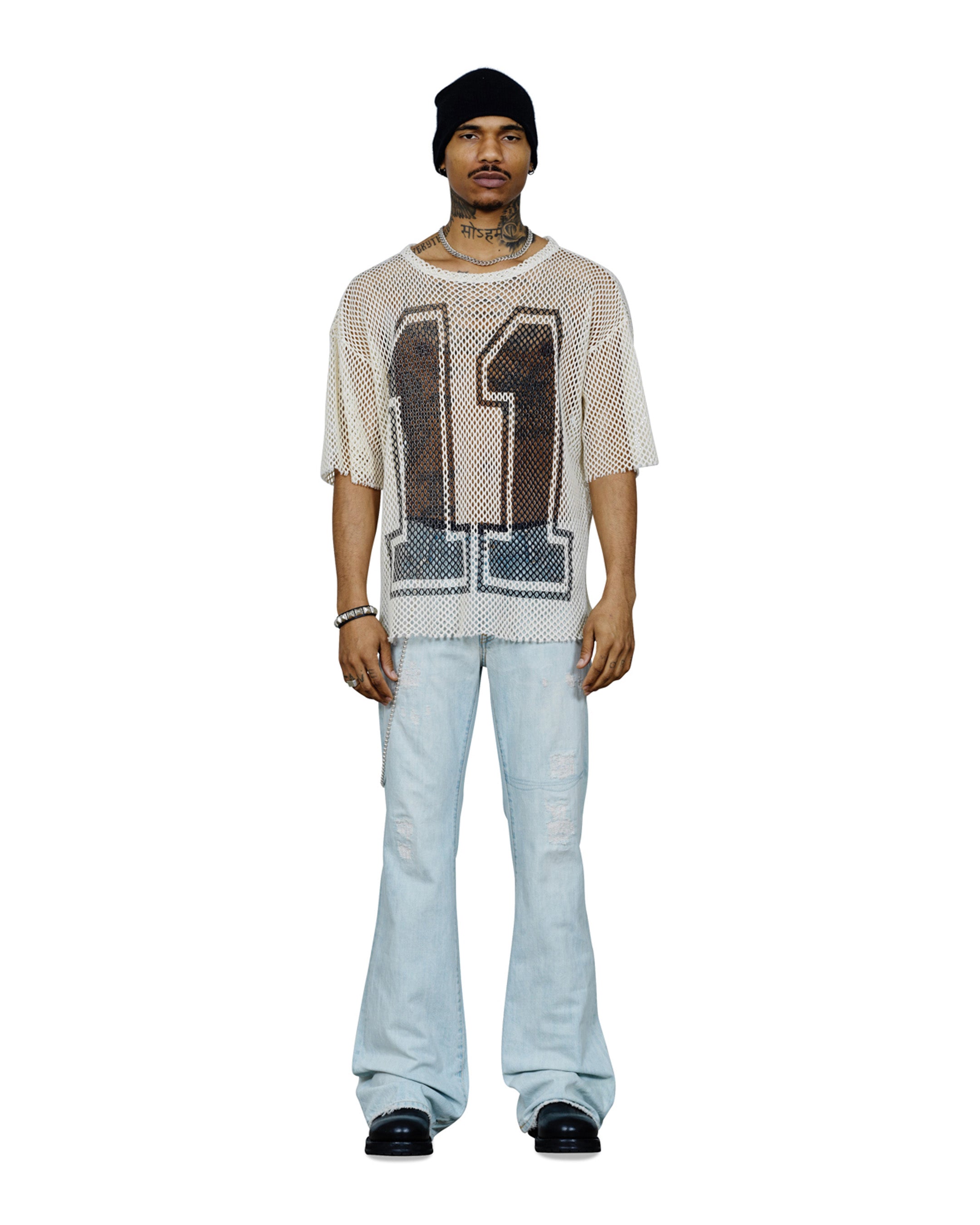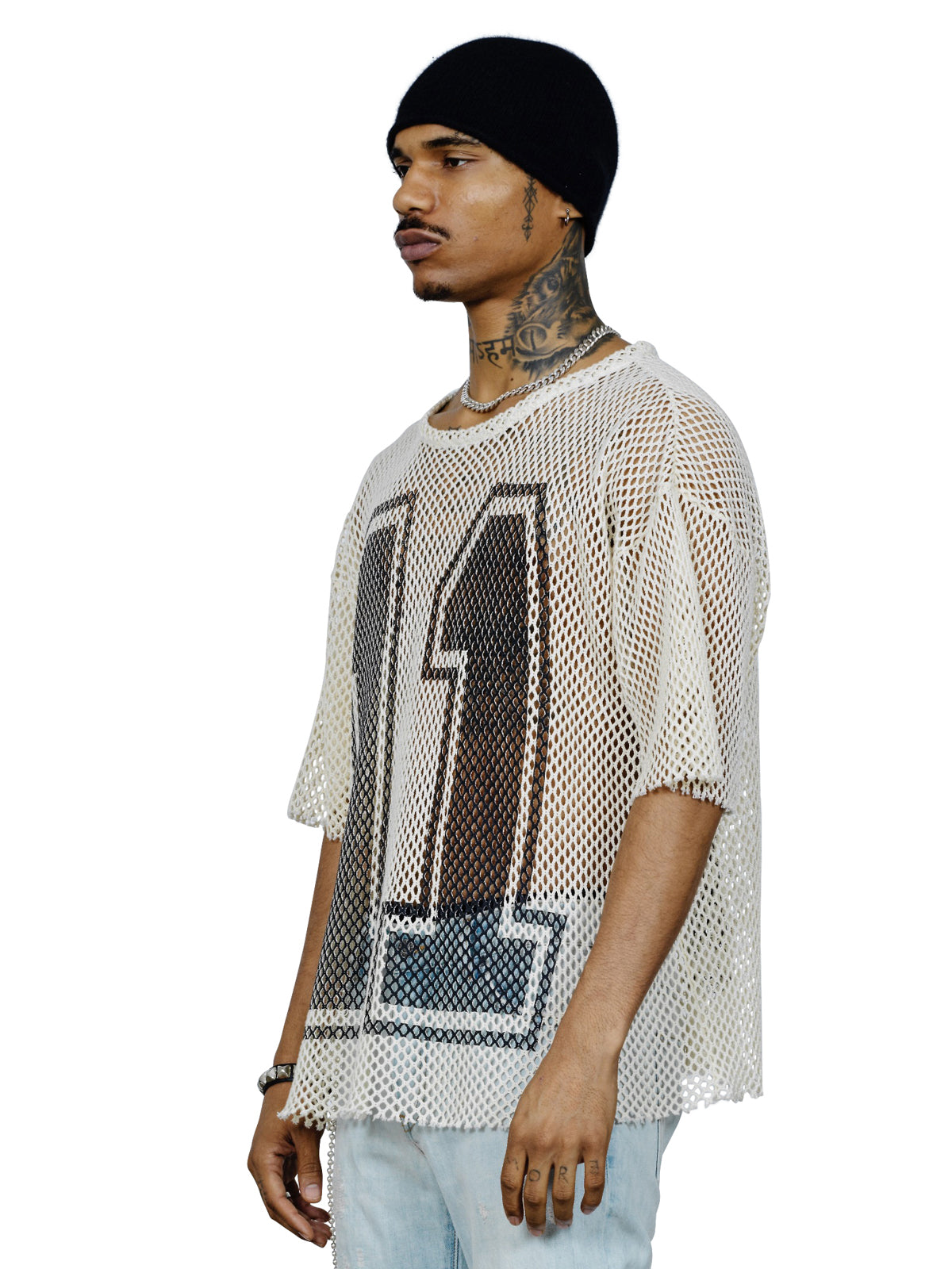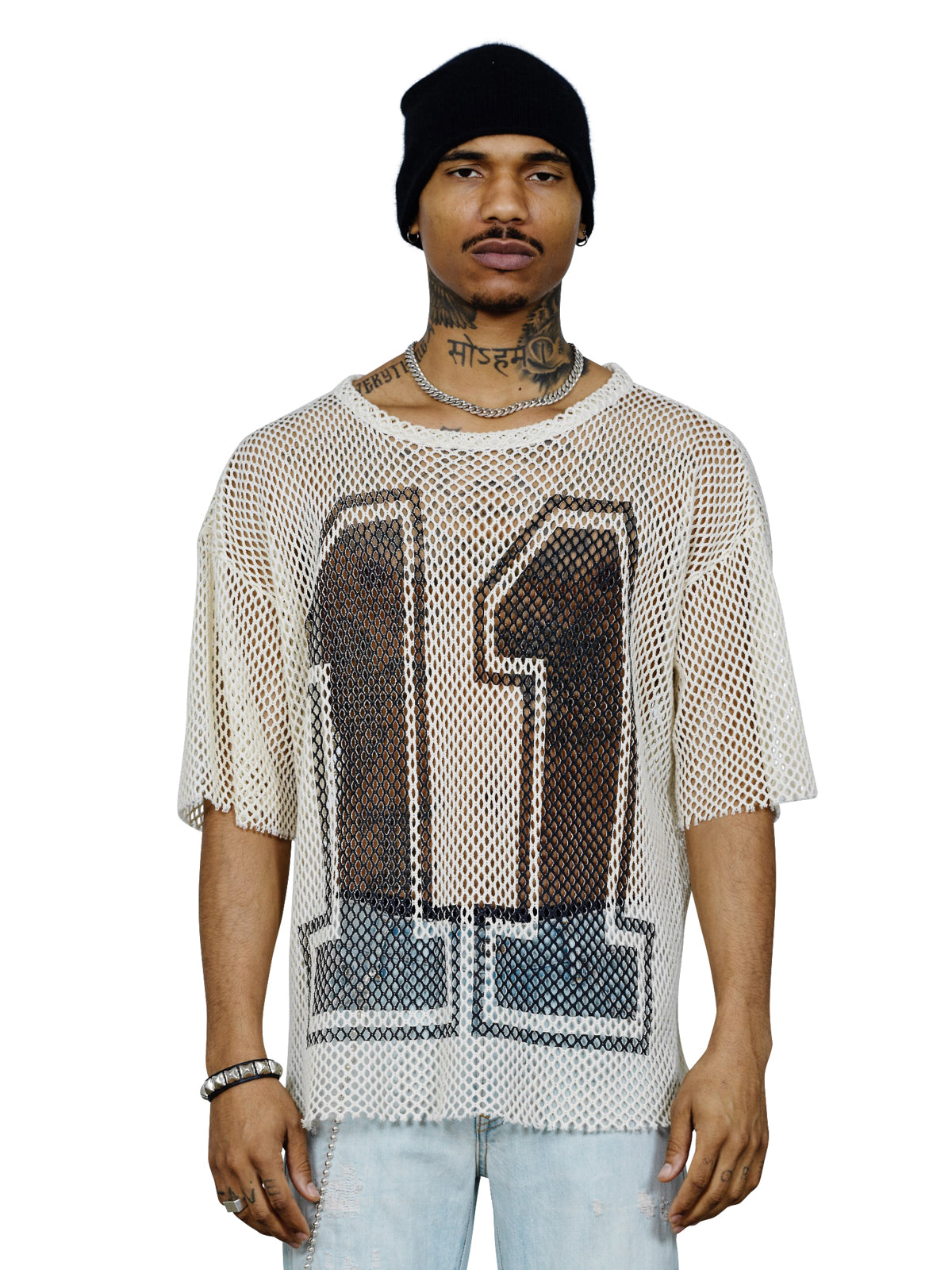 Roosevelt Fisherman OG Net Football Tee, crafted from 100% premium cotton for exceptional comfort and durability. Featuring a classic net-inspired design that pays homage to vintage athletic style. Made in the USA.