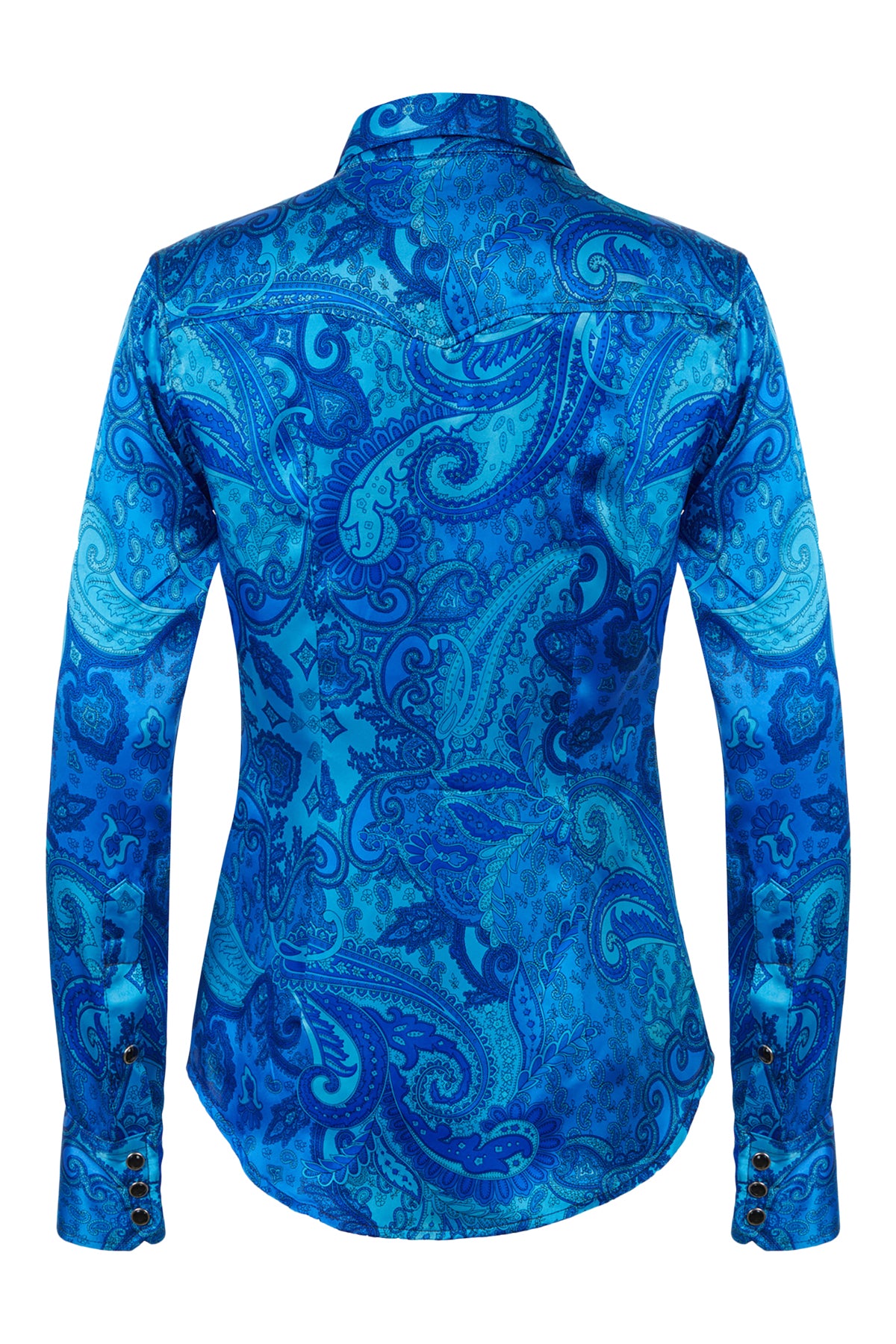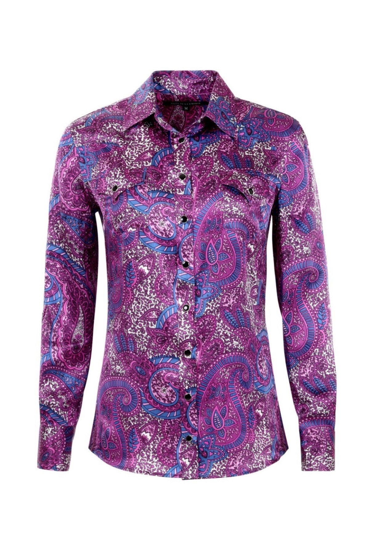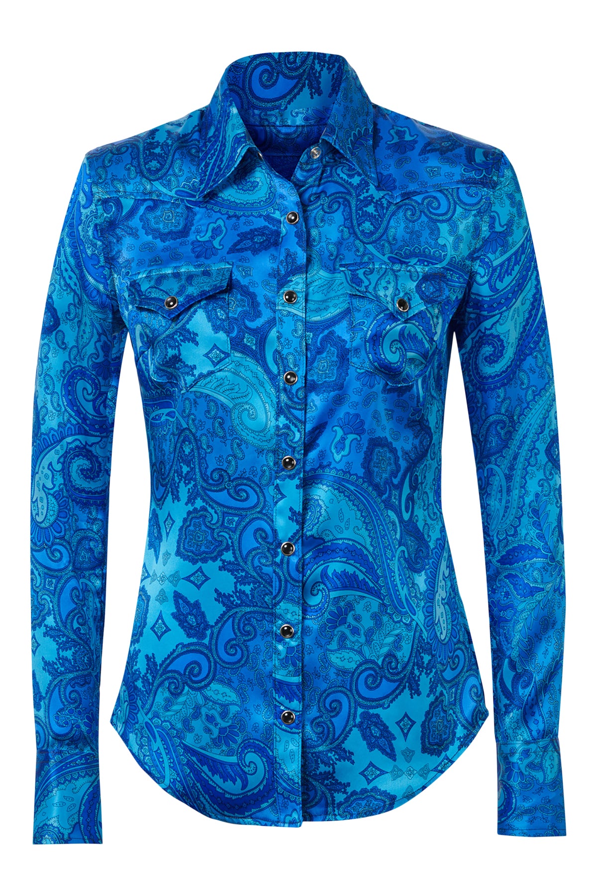 Western Silk Shirt with snap button front closure and snap button flap pockets. Crafted from 100% silk for a luxurious and elegant finish. Premium European fabric. Made in the USA.
