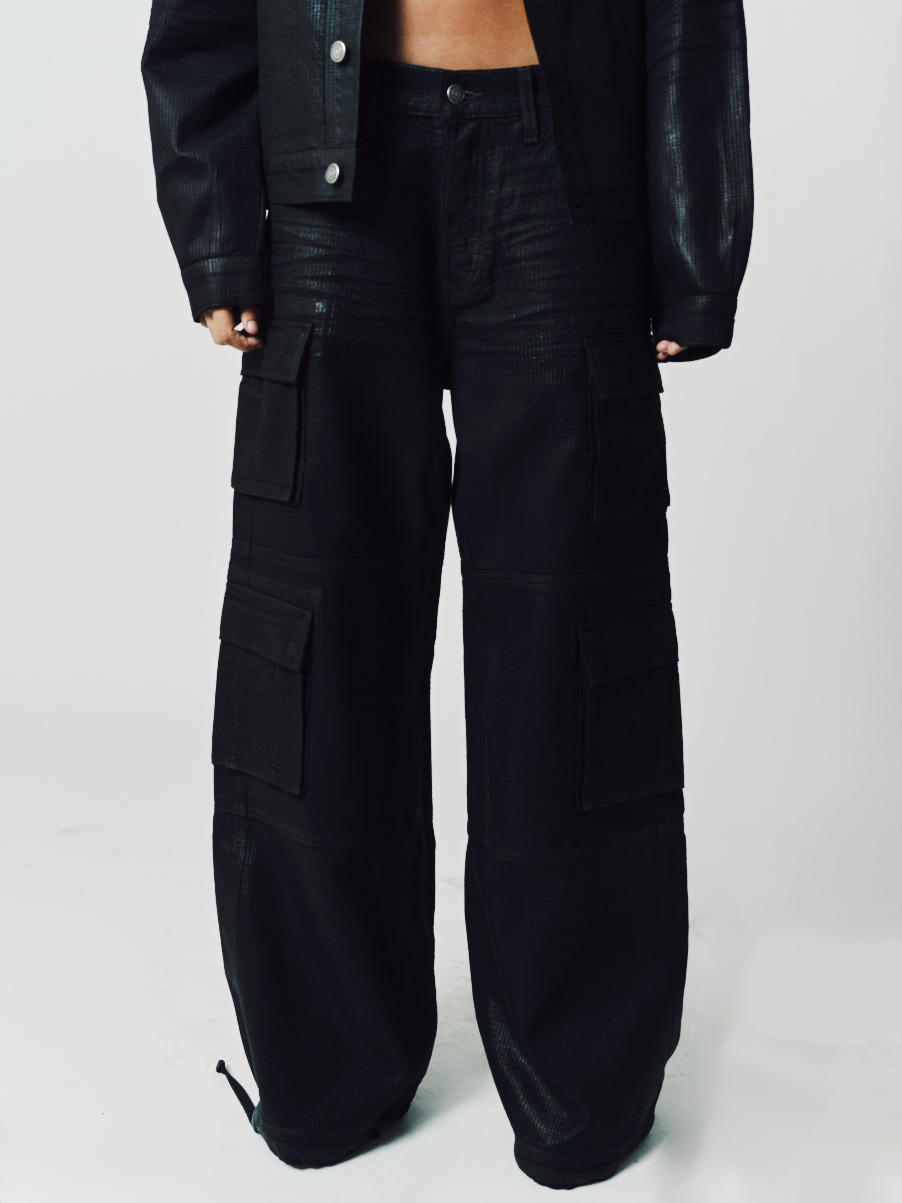 Cargo Pants, crafted from 100% premium cotton for durability and comfort. Featuring a button and zip front closure with snap-closure flap pockets for a functional and versatile design. Made in the USA with high-quality European fabric.