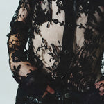 Stevie Western Shirt with button front closure and button flap pockets. Crafted from a premium blend of 72% cotton and 28% polyamide with a stunning floral lace design for a touch of intricate charm. Premium European fabric. Made in the USA.