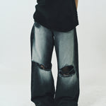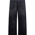 Wide-leg denim jeans with button and zip front closure. Crafted from 100% cotton for a structured fit. Features classic five-pocket styling. Premium European fabric. Made in the USA.