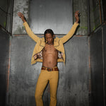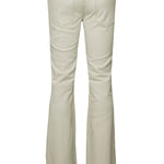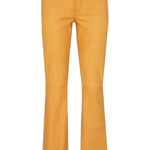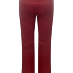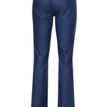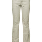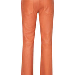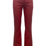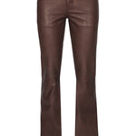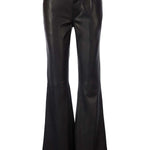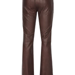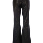 Low-rise flare pants with button front closure and classic five-pocket styling. Crafted from 100% calfskin for a luxurious finish. Premium European fabric. Made in the USA.
