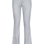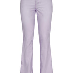 Low-rise flare pants with button front closure and classic five-pocket styling. Crafted from 100% calfskin for a luxurious finish. Premium European fabric. Made in the USA.