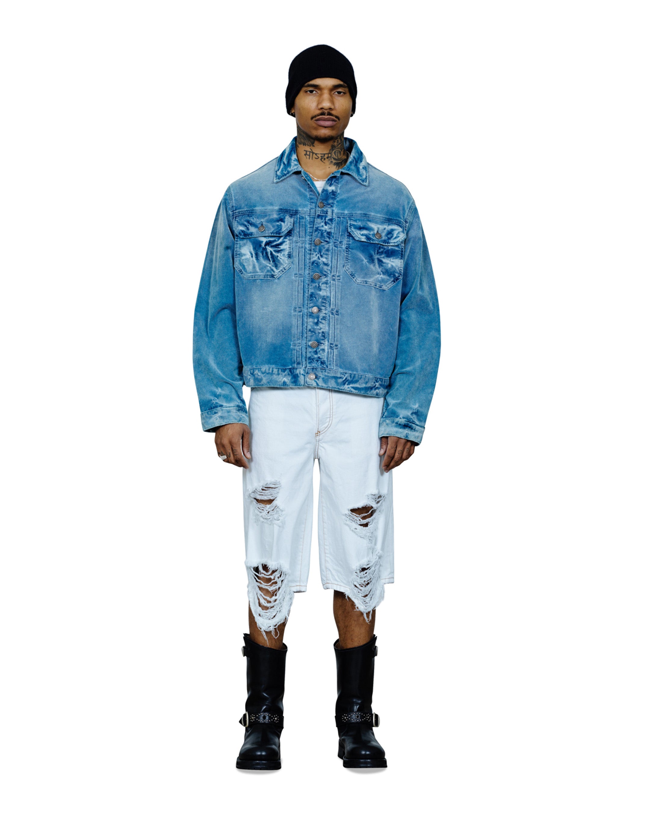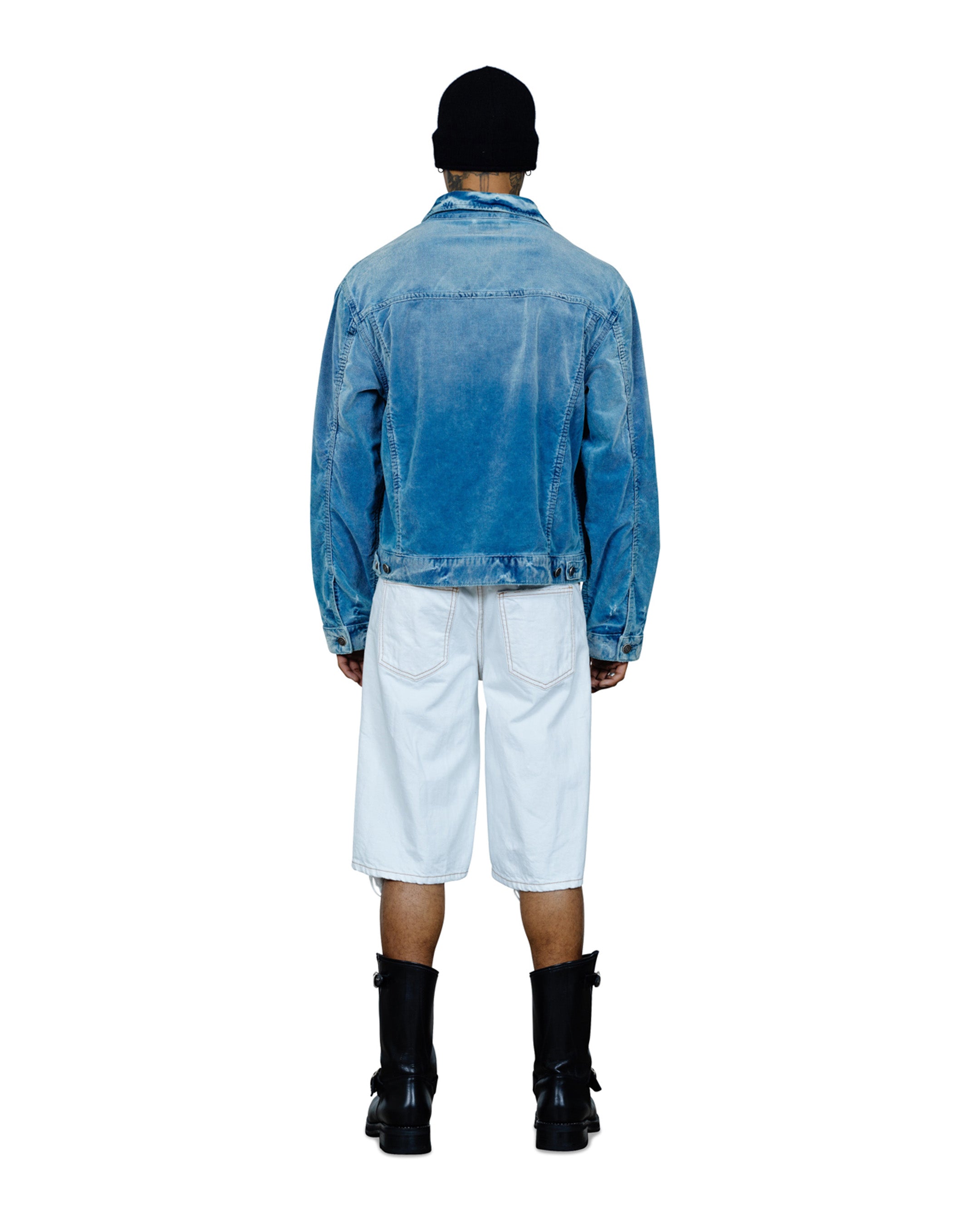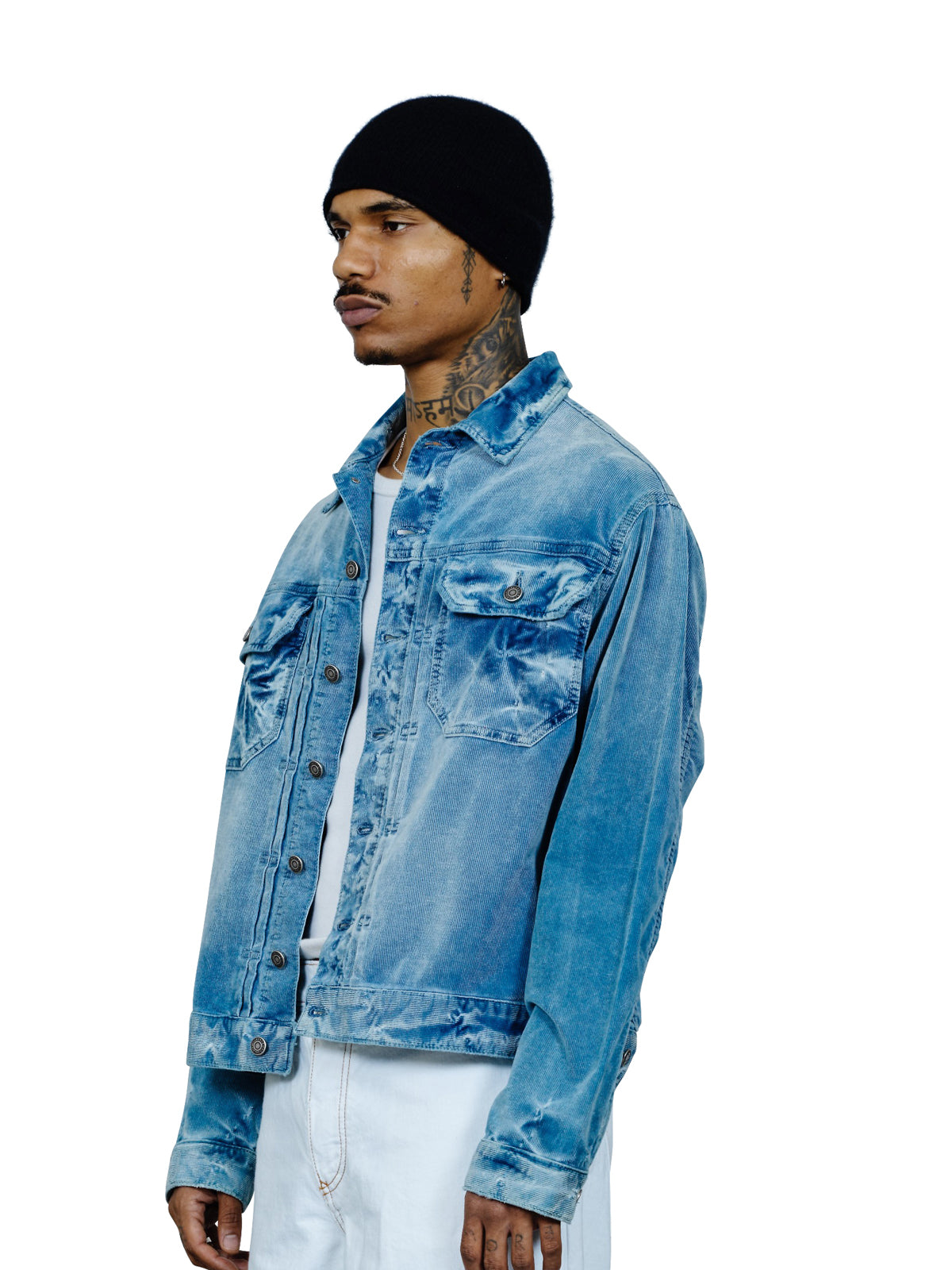 Otto Indigo Cord Jacket, crafted from a premium blend of 98% cotton and 2% elastane for a comfortable fit with a touch of stretch. Featuring a rich indigo hue and a classic corduroy texture for timeless sophistication. Made in the USA.