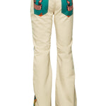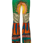 Low-rise flare jeans with button front closure. Crafted from 100% cotton with classic five-pocket styling and a distinctive printed design. Premium European fabric. Made in the USA.