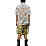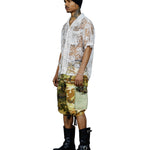 Marco Embellished Camo Printed Cargo Short, crafted from 100% premium cotton with materials sourced from Japan. Featuring a bold camo print and intricate embellishments for a distinctive look, paired with a functional cargo design. Made in the USA.
