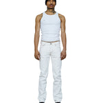 Straight-leg jeans with a low-rise silhouette and button closure. Crafted from 100% cotton with classic five-pocket styling. Premium European fabric. Made in the USA.