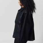 Introducing the Trucker Jacket, a timeless staple with a modern edge. Crafted from 100% cotton and made in the USA, this jacket features a button front closure and snap flap pockets, combining practicality with a clean design. Constructed from European fabric, it offers durability and comfort, making it an essential piece for any wardrobe. Versatile and effortlessly stylish, this jacket is perfect for layering or wearing solo, embodying a classic look that never goes out of style.