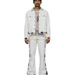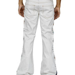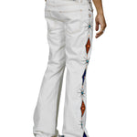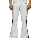 Low-rise flare jeans with button front closure. Crafted from 100% cotton with classic five-pocket styling. Premium European fabric. Made in the USA.