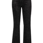 Low-rise flare pants with button front closure and classic five-pocket styling. Crafted from 100% viscose for a sleek and lightweight feel. Premium European fabric. Made in the USA.