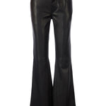Low-rise flare pants with button and zip front closure and classic five-pocket styling. Crafted with a shell of 100% lambskin and lined with 100% viscose for a luxurious finish. Premium European fabric. Made in the USA.