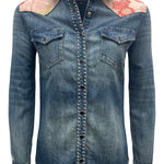 Western Shirt with snap button front closure and snap button flap pockets. Crafted from 100% cotton with silk vintage kimono contrast for a unique and standout design. Premium European fabric. Made in the USA.