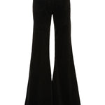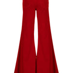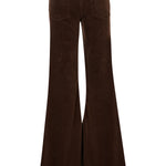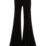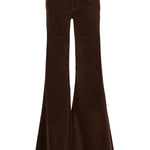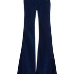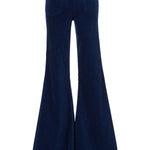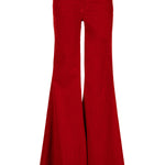 Mid-rise super flare pants with zip and button front closure. Crafted from a blend of 99% cotton and 1% elastane for comfort and flexibility. Features classic five-pocket styling. Premium European fabric. Made in the USA.