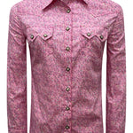 Maxine Printed Cotton Western Shirt with snap button front closure and snap button flap pockets. Crafted from 100% cotton for a breathable and durable fit. Premium European fabric. Made in the USA.