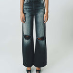 Wide-leg denim jeans with button and zip front closure. Crafted from 100% cotton with five-pocket styling. Premium European fabric. Made in the USA.
