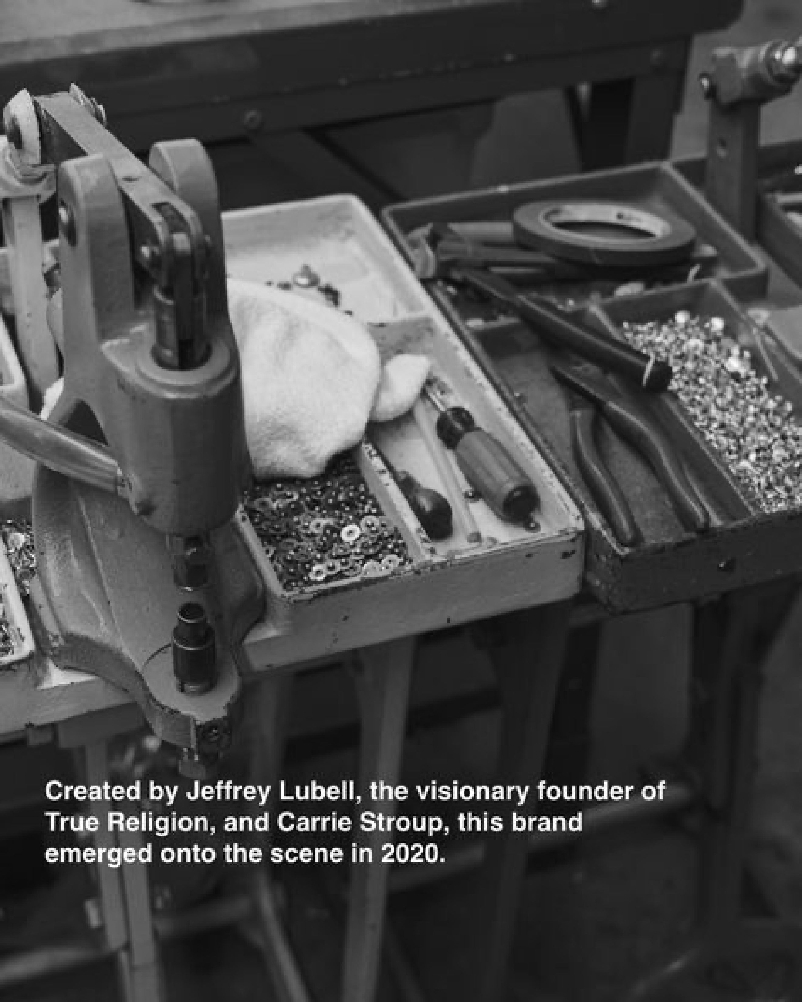 Designed by Jeffrey Lubell, founder of True Religion, and Carrie Stroup, the brand emerged in 2020, unveiling a curated assembly of singular pieces tailored for those who embrace the daring and enigmatic in fashion.