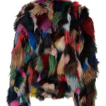 Fur biker jacket with zip front closure. Features a shell crafted from 100% fox fur in multicolored hues, contrasted with 100% calfskin for a sleek finish. Lined with 100% viscose for smooth, comfortable wear. Premium European fabric. Made in the USA.