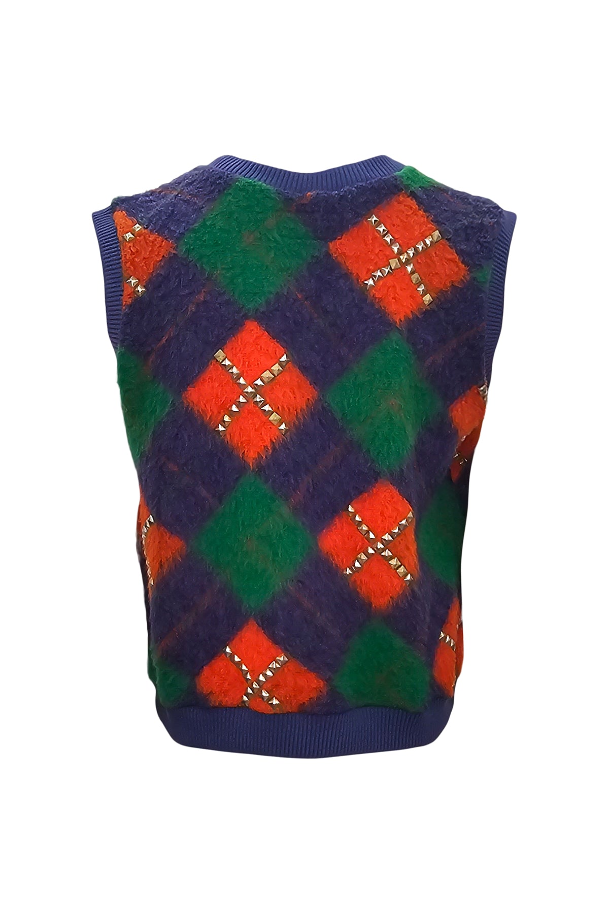 Wool vest crafted from a blend of 45% polyester, 30% acrylic, 15% wool, and 10% modal. Features embellished wool detailing for a distinctive touch. Premium European fabric. Made in the USA.
