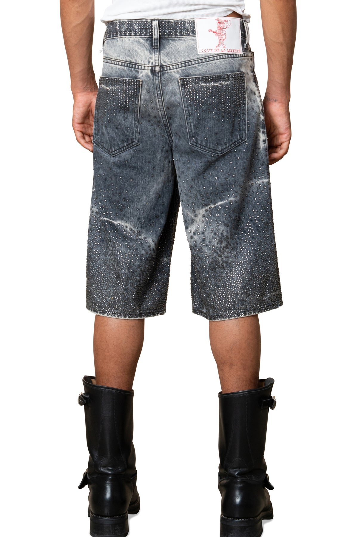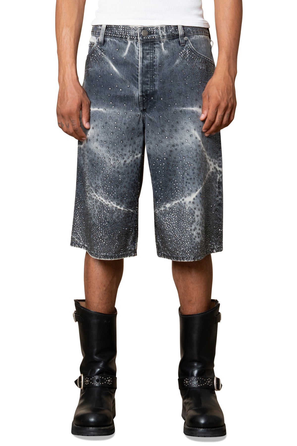ZANDER CRYSTAL RIGID DENIM BAGGY SHORT